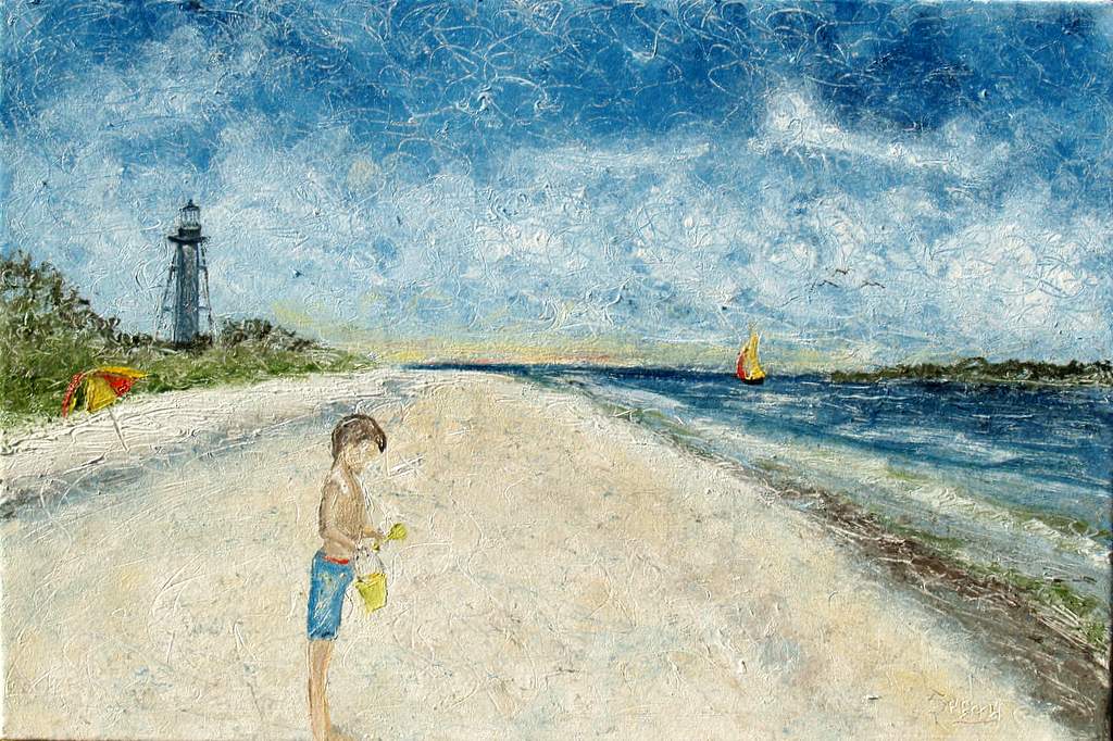 The warmth of the sun, a light breeze, the salt of the ocean mist, the sound of waves rolling in on the beach, he's lost in thought and daydreaming of some great discovery that his days explorations have revealed. Then a voice calls out, it's his mother and today, in this moment, all is well with the world.